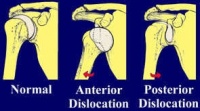 • Posterior (10% or dislocations) – Arm is above the head or the direction of the dislocation is to the back.