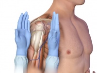 - Place the ulnar aspect of one hand vertically over the axilla